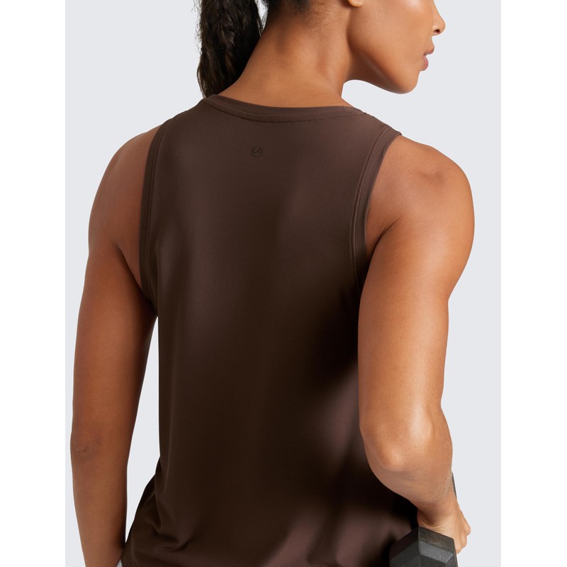 CRZ YOGA Cloudweight Crew Neck Workout Tanks Lightweight Athletic Gym Tops for Women Soft Basic Running Sleeveless Shirts Coffee Brown Medium