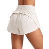 CRZ YOGA High Waisted Running Shorts for Women Ruffled Trim Tummy Control for Athletic with Mesh Liner Zip Pocket Milky White (Bone) Small