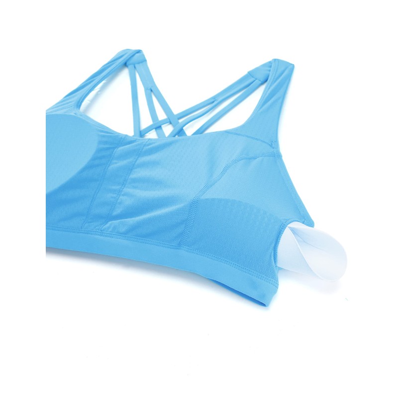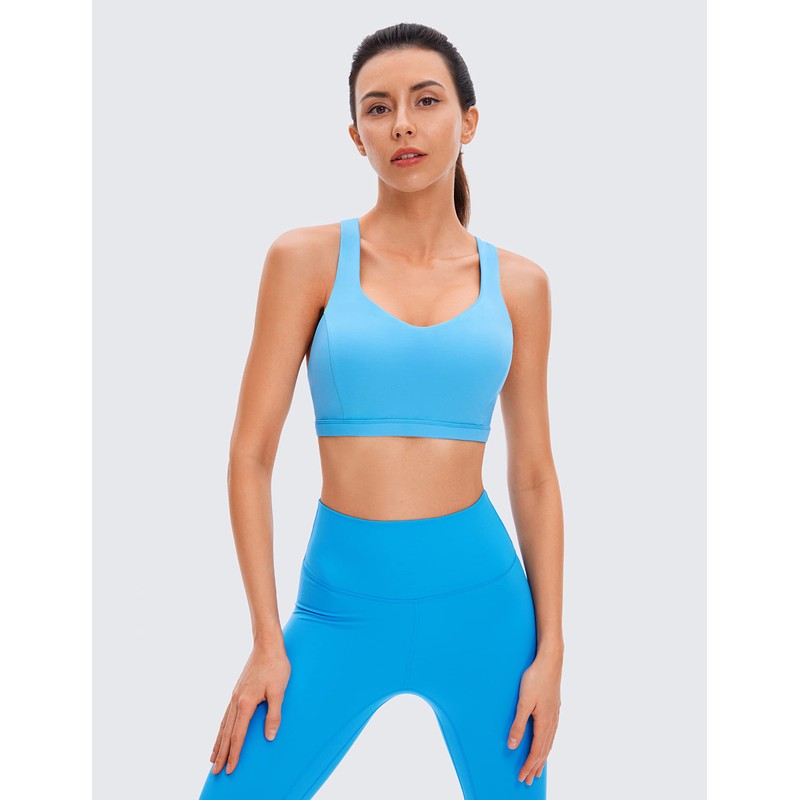 CRZ YOGA Strappy V Neck Sports Bras for Women - Criss Cross Back Wireless Padded Workout Yoga Bra Serenity Blue Medium
