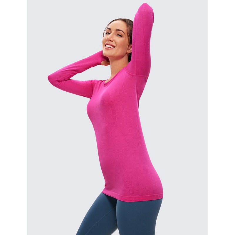 CRZ YOGA Women's Seamless Athletic Long Sleeves Sports Running Shirt Breathable Gym Workout Top Hibiscus Purple X-Small