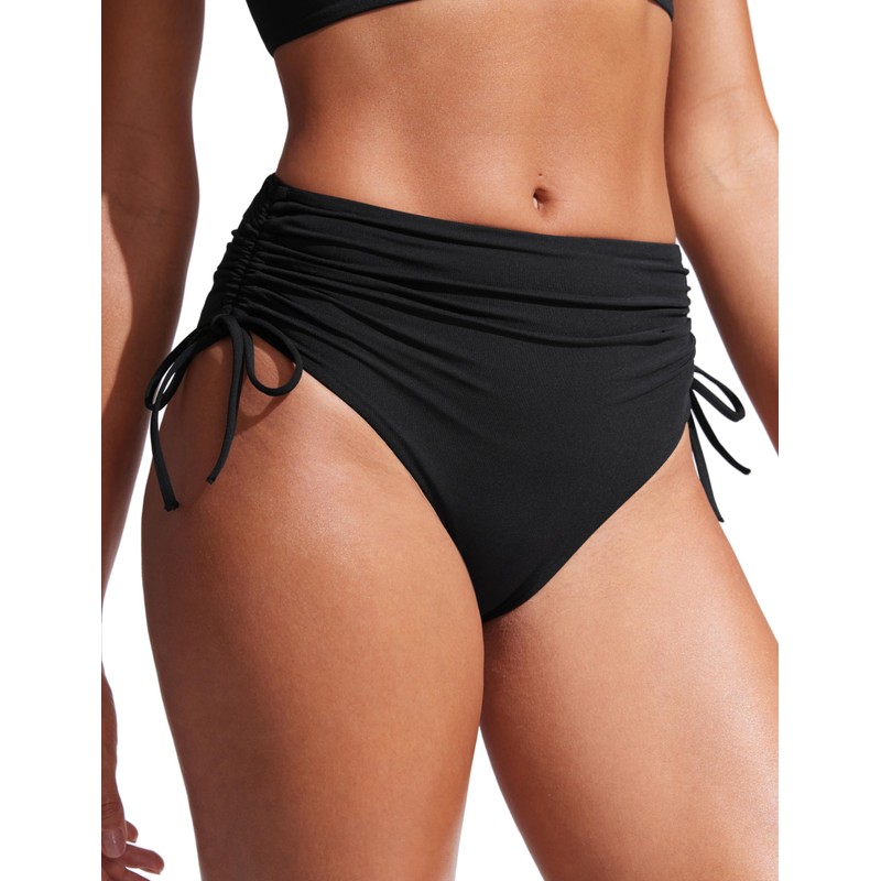 CRZ YOGA Womens High Waisted Bikini Bottoms Adjustable Ruched Side Tie Bathing Swim Full Coverage Swimsuit Briefs Black X-Small