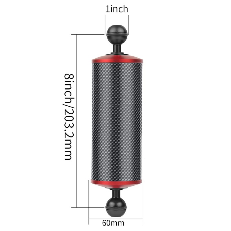 CS PRIORITY Enhanced Dia 60mm Carbon Fiber Float Buoyancy Aquatic Arm 5" 8" Dual Ballhead 1" DSL Camera Tray Underwater Diving Accessories (New 8 inch MixA)