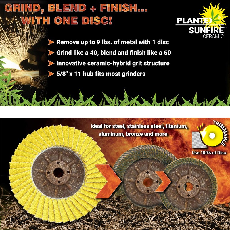 - PLANTEX SUNFIRE ceramic flap sanding disc to grind, blend and finish all with one disc