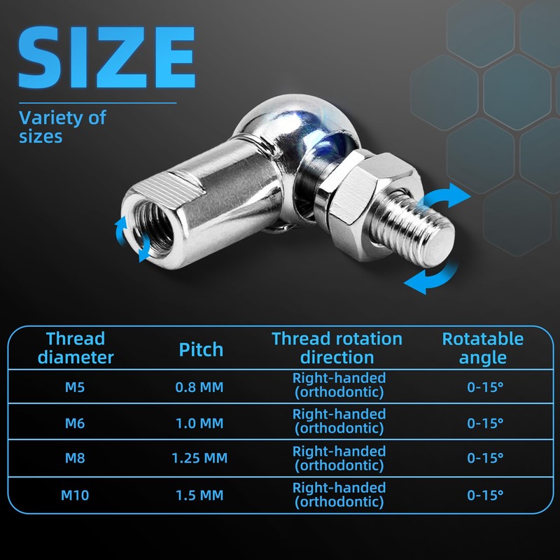 - PRECISION THREAD, SECURE FITTING:Thread diameter:6mm; Pitch:1.0mm; Thread Direction: Both internal and external threads are right-hand drive, and the precise thread ensures secure installation without slipping. Please measure the required size before ordering to ensure a perfect fit