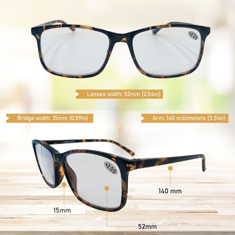 • Smartly built to last: Our computer glasses are made of strong, lightweight and durable material (TR90) which is ideal for everyday use. With built-in spring hinges and a smart frame design, our reading glasses won't slip off your nose even if you are literally running late for class.