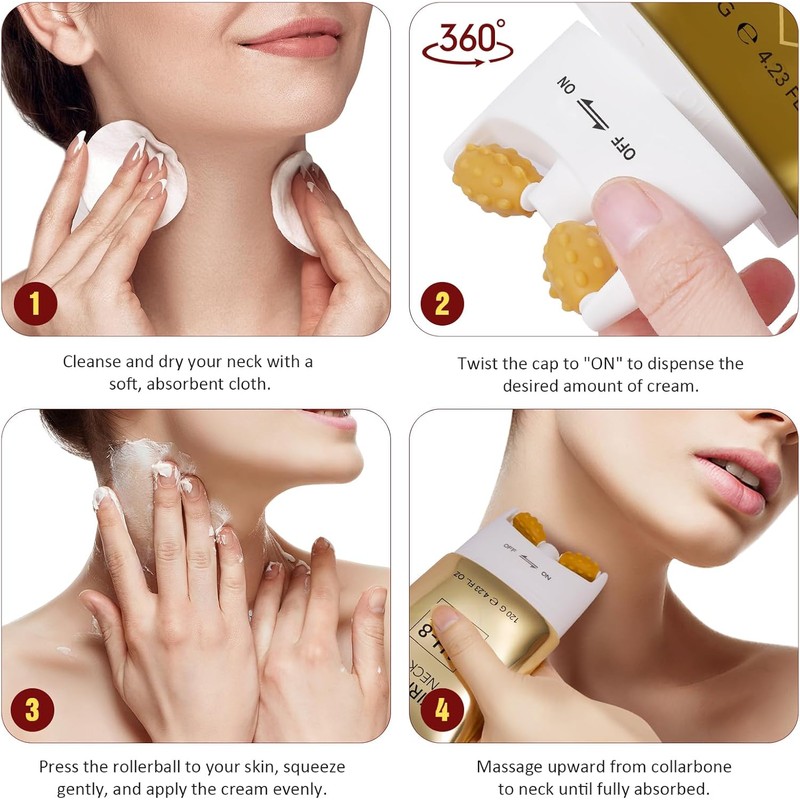 CSDLQNF AH-8 Firming Neck Cream, Double Rorrler Neck Cream for Lifting, Firming and Moisturizing Skin, Reduces Wrinkles, Improves Elasticity, Non-Greasy, Fast Absorbing Neck Cream-120g