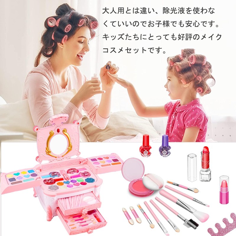 - 🔥 Satisfy children's curiosity: Everyone knows that a little girl likes to imitate her mother like makeup and ruin her mother's cosmetics. With these girls' cosmetics, your mother can teach children their makeup skills so they can make their own mother's cosmetics