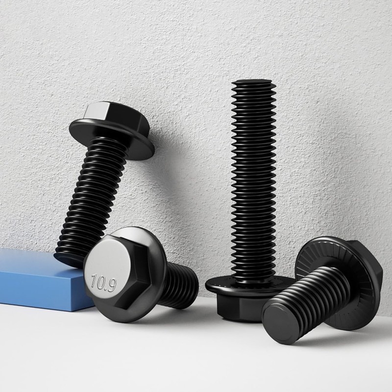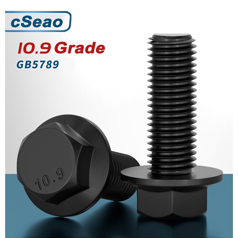 cSeao M8 x 30mm Flanged Hexagon Bolts, Flanged Hex Screws, 10.9 Grade, Black Oxide