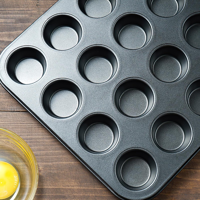 Make delicious baked goods at home with this set of nonstick carbon steel muffin pans. Each baking pan holds 24 cups (48 cups total).