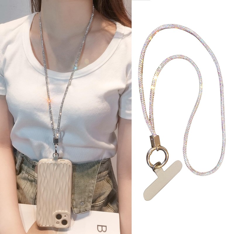 CSILOVEE Smart Phone Strap, Neck, Glitter, Rhinestones, Crystal, Cute, Shoulder Strap, Office, Popular, Neck Strap, Key Chain, ID Card, Easy to Put on and Take Off, Compatible with All Smartphones,