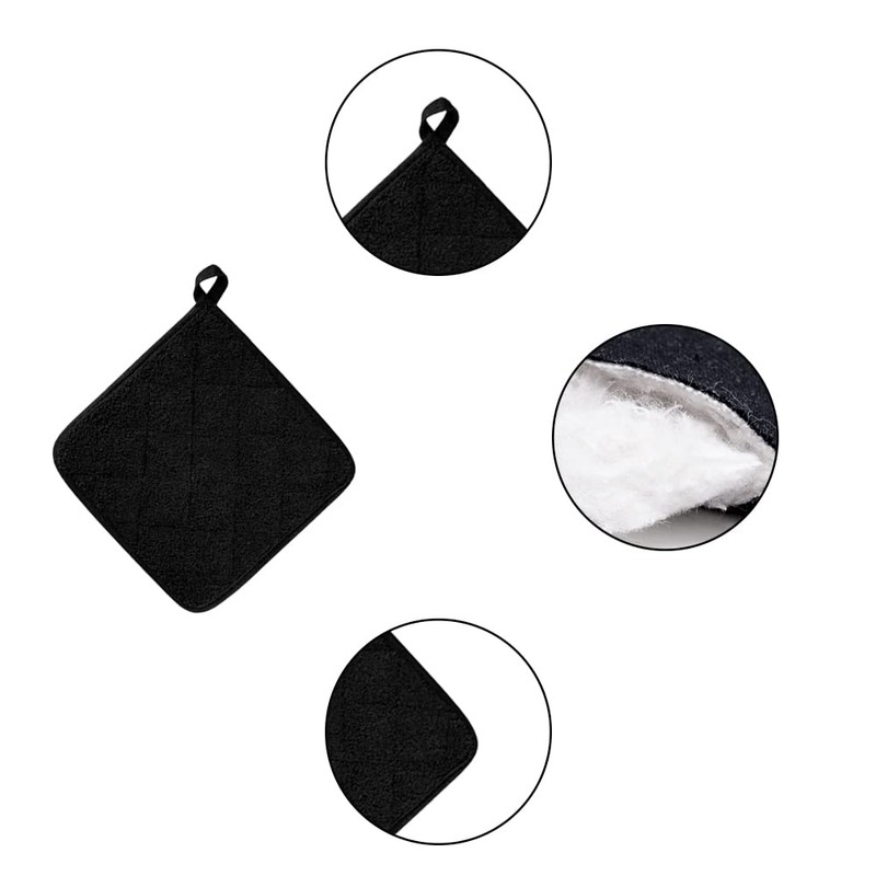 Csirnto Pack of 2 Cotton Pot Holders Black Oven Gloves Set Heat Resistant Pot Holder Square Pot Holder Coaster for Cooking and Baking