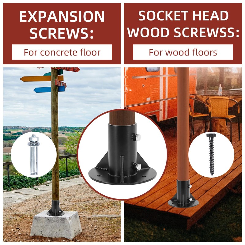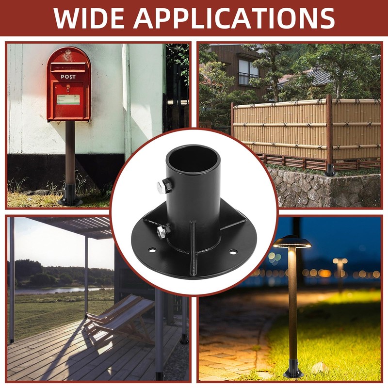 - 【Easy to Install】:the bracket is attached to the bottom of the post using screws or bolts; then secured post using the fasteners screws. The round bottom design provide extra surface area for better stability and load-bearing capacity.