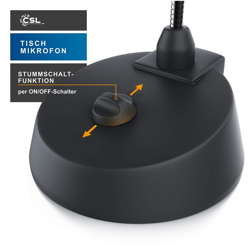 CSL - Desktop PC Mikrofon - Klinkenanschluss Tischmikrofon - Ideal für Sprachaufnahmen – hohe Klangqualität - Stummschaltung - Konferenz, Gaming, Podcast, Skype, Streaming, YouTube