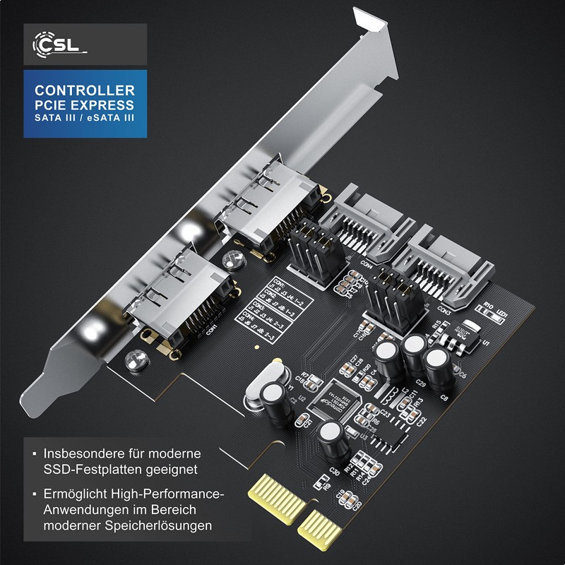 - Model Type: CSL SATA III PCIe Card 2.0 Controller / Interface Card for SATA III / eSATA III (SSD+HDD Drives)