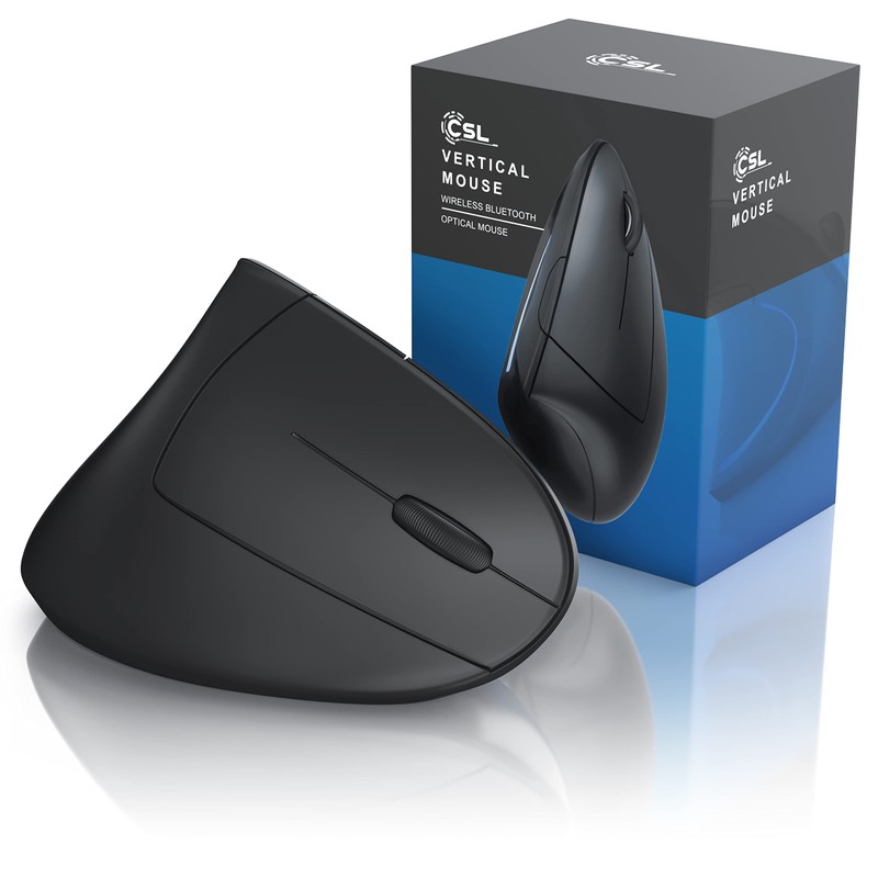 - OPTIMAL ERGONOMICS THROUGH VERTICAL DESIGN: The CSL Bluetooth Vertical Mouse, will free you from an unnatural arm position as well as from the annoying cable connection to the computer. The ergonomic design maintains the natural arm position and relieves tennis elbow pain. The arm and wrist will always be relaxed, even after long working hours. Thanks to the Bluetooth version 4.0 connection, the mouse control will be space-saving. Model number: 305784.