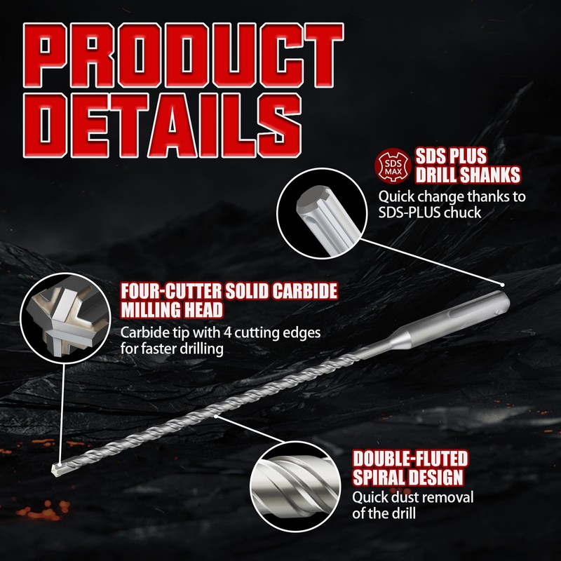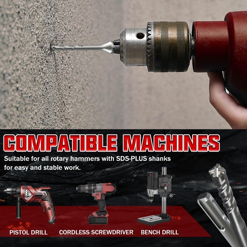 • 【Adaptive equipment】SDS Plus drills are designed for rotary hammer drills with hexagonal shanks and are compatible with any tool with SDS Plus.