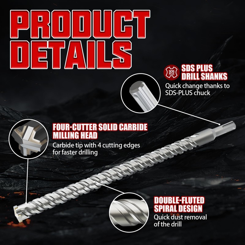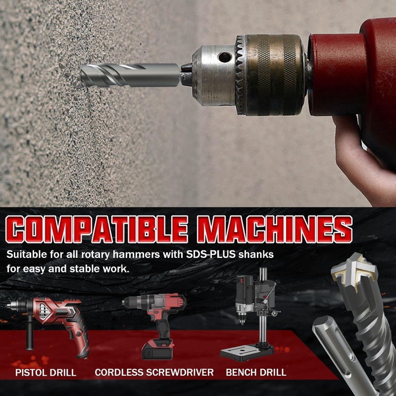 - 【Adaptive equipment】SDS Plus drills are designed for rotary hammer drills with hexagonal shanks and are compatible with any tool with SDS Plus.