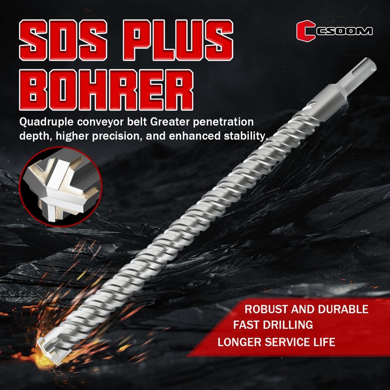 CSOOM SDS Plus Rotary Hammer Drill Bit 3/4"x18.11", Professional Concrete Drill Bit for Concrete, Brick, Stone and Cement Walls