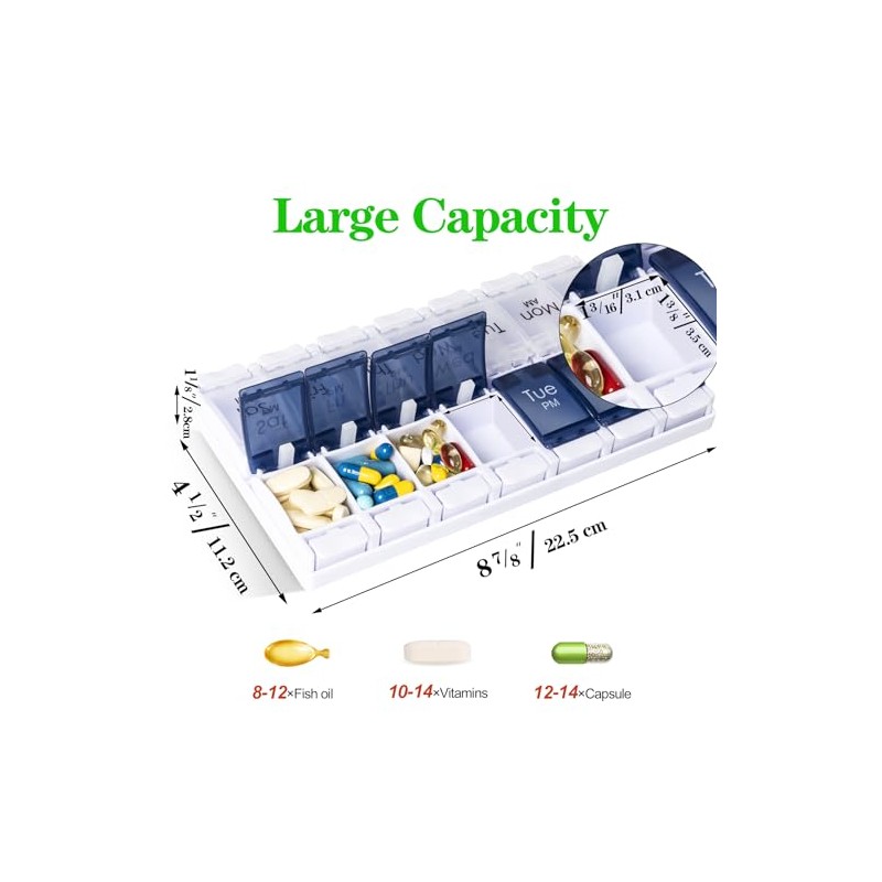 - BPA Free Pill Box - The large letter pill boxes 7 day 2 times a day is made of food-grade PP material, tasteless and is safe to store pills.