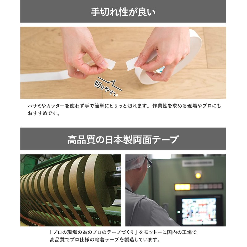- Product Precautions: Depending on the type of material and usage conditions, the tape may not be able to achieve the original performance of the tape. Please test before using. ・Please note that the release paper used on the tape may slip over if left on the floor or the like