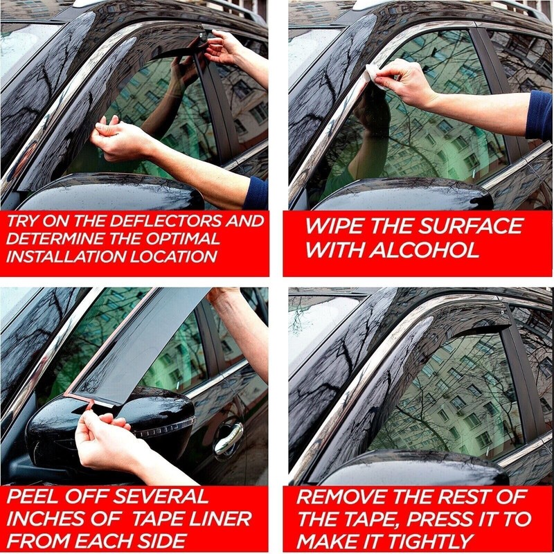 - EASY INSTALLATION - 4-Piece Car Ventvisor set is really easy and fast to install using the adhesive tape and step by step thoroughly following the installation instructions.