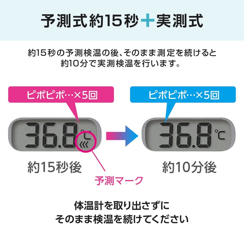 - 【約15秒ではかれる予測検温】忙しい朝でも約15秒ですばやく検温できます。