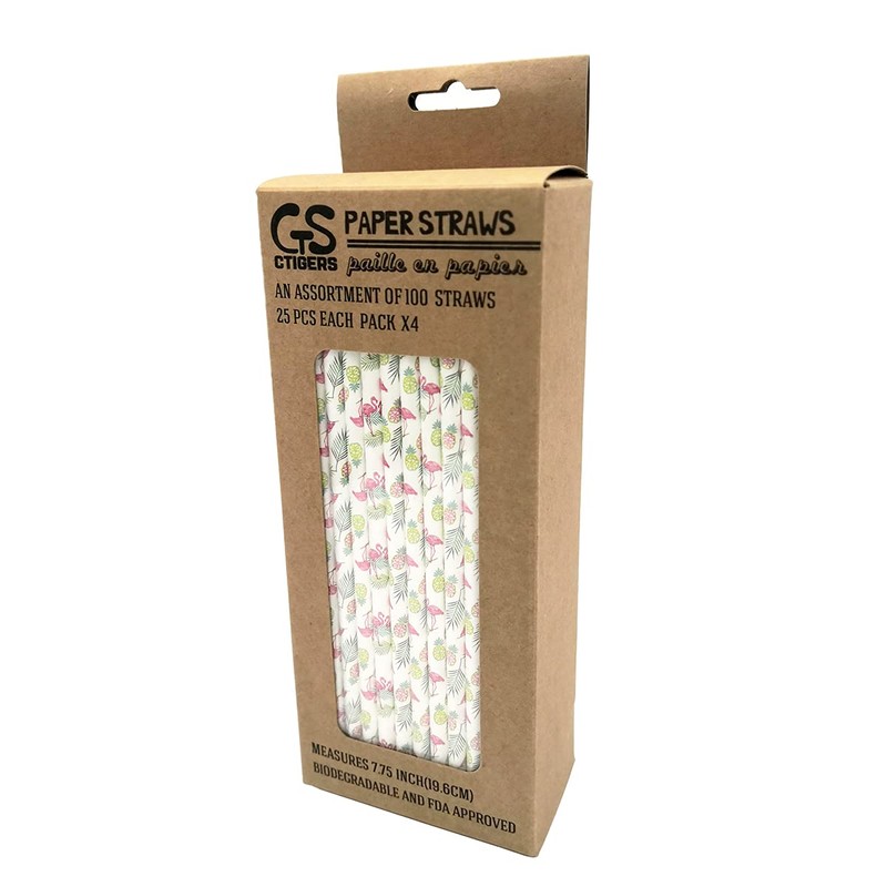 - 100 pcs per Box. Measures 7.75"x0.25", Attractive patterns. One box including 4 packs. And there are 25 straws per pack.