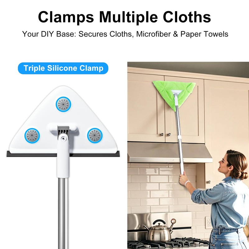 CTIME 78'' 3 in1 Professional Window Squeegee & Wall Mop : Window Cleaning Kit with 360° Rotating Triangular Head & Universal Cloth Slots (Includes 3 Reusable Pads)