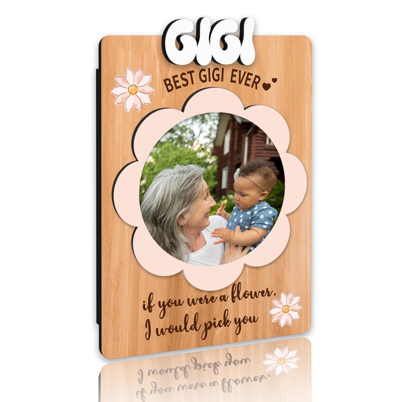 CTLHKY Gigi Magnetic Photo Frame, Best Gigi Ever, Cute Fridge Magnet Photo Frame For Nana Mimi, Mini Floral Wooden Picture Frames For Refrigerator Locker -A18