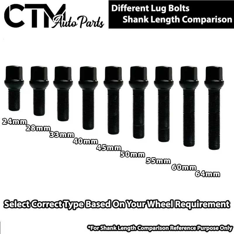 - Lug Bolts Shank Length: 2.16"(55mm) Extended