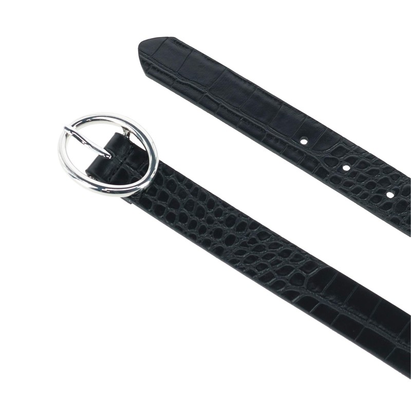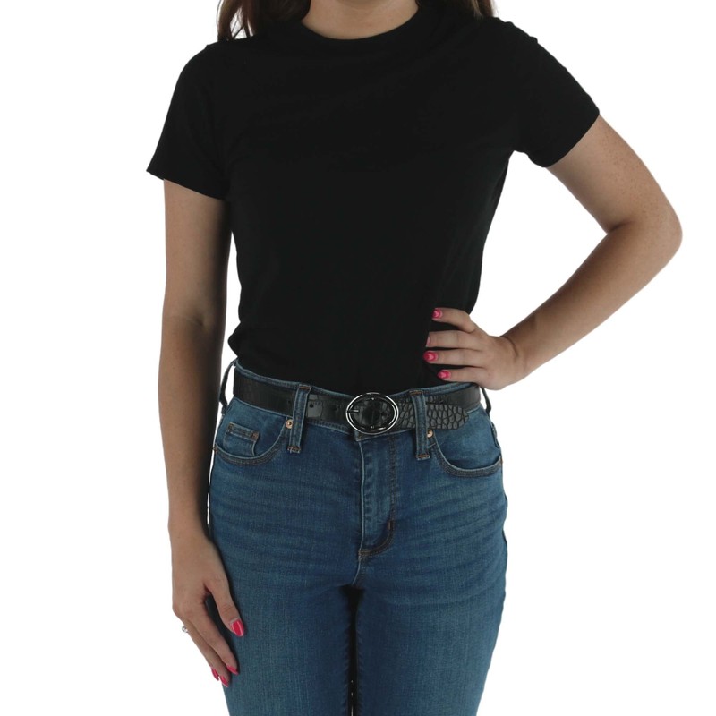 CTM® Women's Croc Print Center Bar Buckle Belt, Small, Black