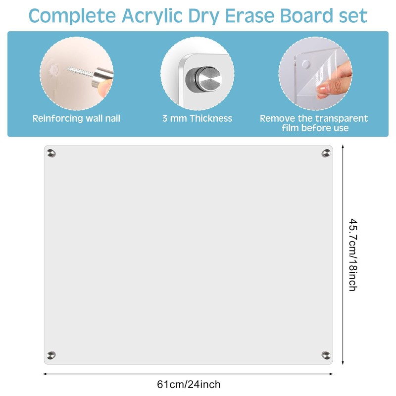 - Sturdy Acrylic Material: our acrylic whiteboard for wall are made of quality and thick transparent acrylic material, its length and width are 24 x 18 inch, and its thickness is 0.2 inch. Whether it is size, material and thickness, it is better. The smooth and flawless clear surface is easy to clean, so you can use it for a long time