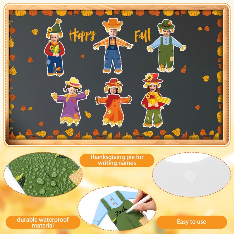 - Easy DIY: these fall Scarecrow paper cutouts are a dream come true for crafters; Simply stick them onto bulletin boards, doors, walls or windows with handy dot stickers; They are for classroom activities, educational projects and, of course, autumn parties