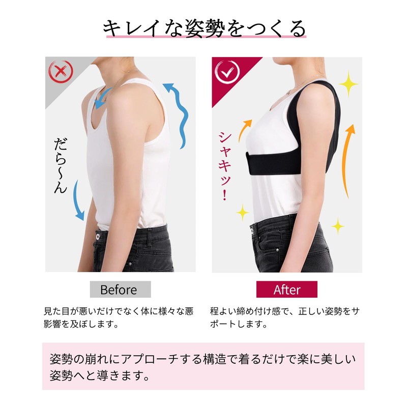 - 3:美しさと快適さの融合: あなたの美しい背中を引き立てる肩背一体型デザインの猫背矯正ベルト。人間工学に基づいた洗練された流線型が、あなたの一日を快適に過ごすための秘密。猫背矯正 ベルトの加宽された肩紐が肩をやさしく包み込み、締め付け感ゼロで美姿勢をキープします。