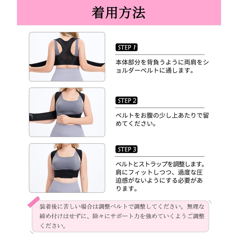 - 4: 簡単調整でパーフェクトフィット: まきがた矯正ベルト 女性用の胸元の幅広マジックテープで、理想のサポート感を手軽に調整。装着は簡単、いつでもどこでもあなたにぴったりのフィット感を。背筋 矯正 ベルトにより、自分だけの快適さで、美しいボディラインを手に入れましょう。