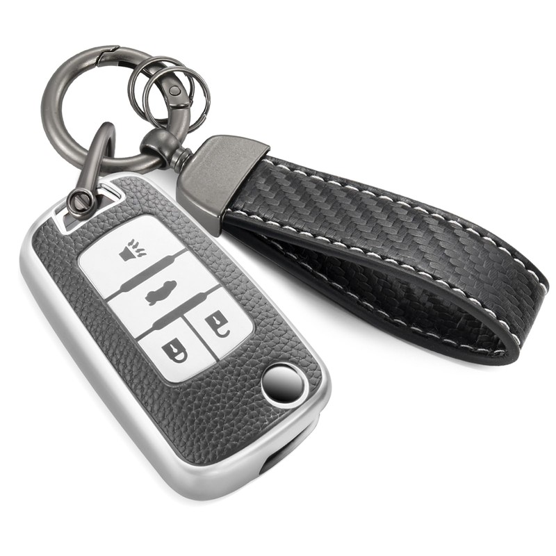 CTRINEWS for Chevy Key Fob Cover with Carbon Fiber Style Belt Keychain,Upgraded TPU Surface Grain Key Case for Cruze Equinox Malibu Sonic Trax Impala Cruze (4 Buttons) (Silver,A2)