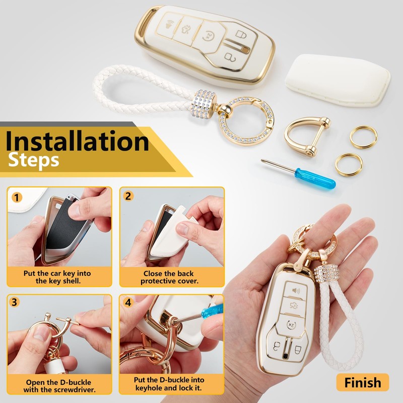 - 【Attractive】With Luxury Diamond Bling Braided Rope Keychain,CTRINEWS for Ford accessories make your key very conspicuous and personalized.