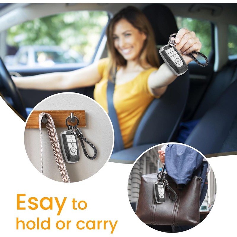 CTRINEWS for Ford Key Fob Cover with Metal Braided Rope Keychain, Upgraded TP...