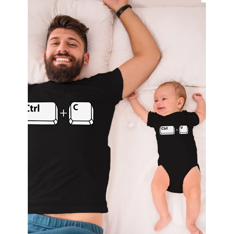 Ctrl C Ctrl V Dad and Son Daughter Matching Shirts Copy Paste Fathers Day Dad Shirt and Baby Bodysuit Set Dad Black Medium/Baby Black 18M (12-18M)