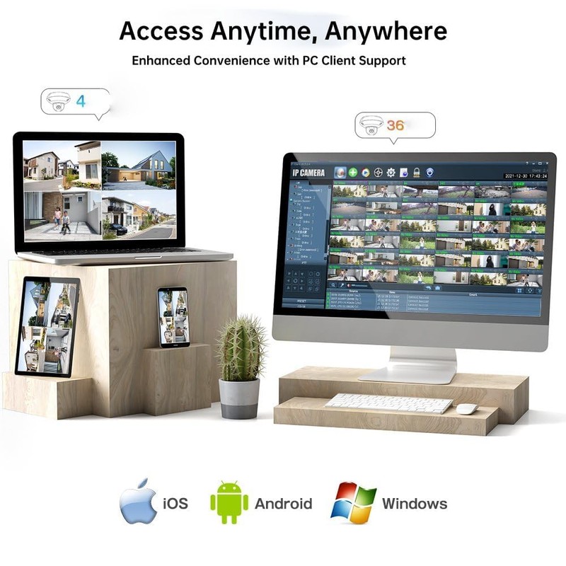 • 4️⃣ PC/APP remote access, 2-way audio and flexible storage. Control everything conveniently via app or PC client. With 2-way audio, you can talk directly to visitors. Recordings can be safely stored on FTP, NAS or in the cloud.