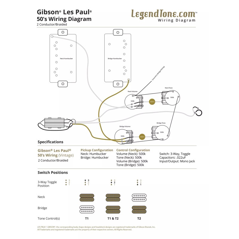 50's wiring gives you great response and maintains clarity as you roll off the volume knob. As you adjust tone knobs, they will have a slight impact on overall volume. This is the classic LP tone and sound.