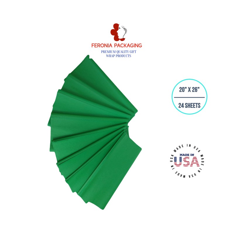 Cuadrados de papel de seda, 24 hojas, papel de regalo premium y suministros de arte para cumpleaños, día festivo o regalos por Feronia embalaje, grande 20 x 26 pulgadas, KellyVerde, 20 x 26