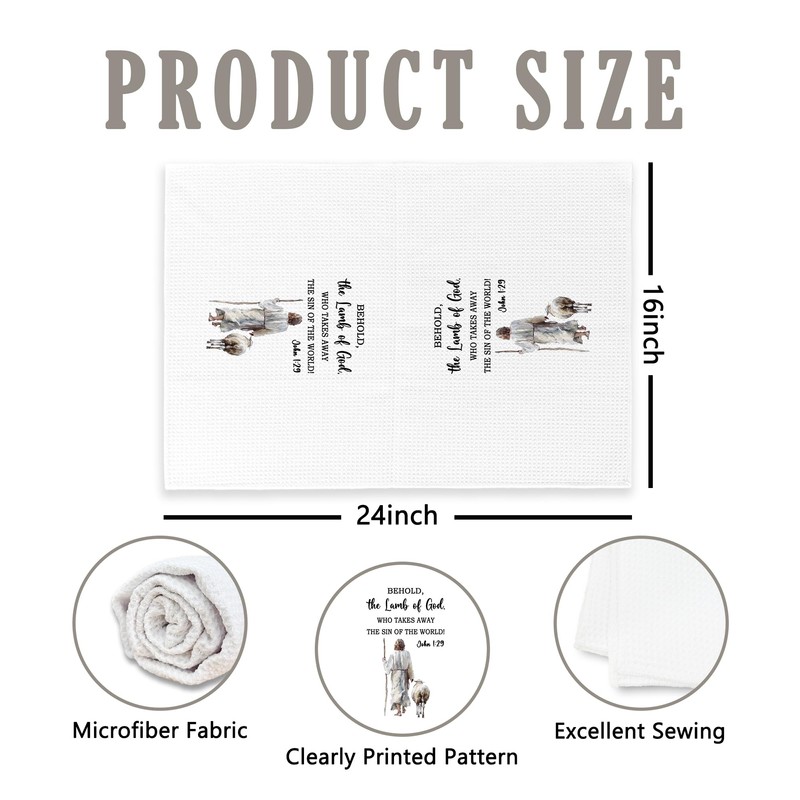 CUANFDDSF Christian Jesus Easter Lamb Kitchen Towels, Religious Easter Day Deccor, Jesus John 1:29 Scripture Quote Behold The Lamb of God Decoration Tea Towels Kitchen Hand Towels 16x24 Inch
