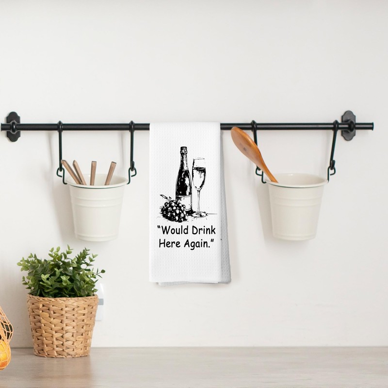 CUANFDDSF Humor Wine Champagne Gift Kitchen Towels, Wine Gifts for Women, Wine Bar Gifts, Champagne Lover Gift Would Drink Here Again Wine Bar Decoration Tea Towels Kitchen Hand Towels 16x24 Inch