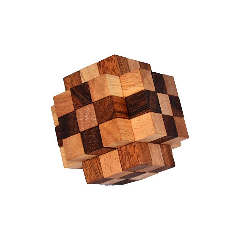 - Samanea Wooden Puzzle Fonzo Cube Chequered in Size 7.5 x 7.5 x 7.5 cm Interlock