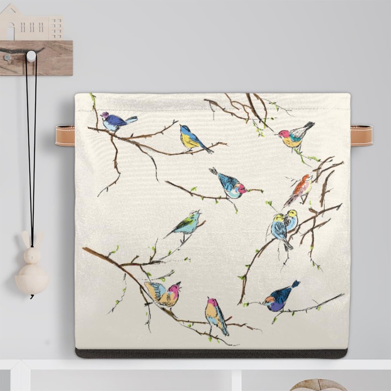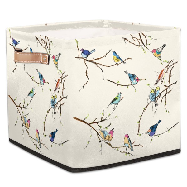 Cube Organizer Bins Retro Bird Collapsible Storage Box Baskets 13"x 13" with Leather Handles for Nursery, Home, Kids Room, Closet Shelf Clothes Toys Storage
