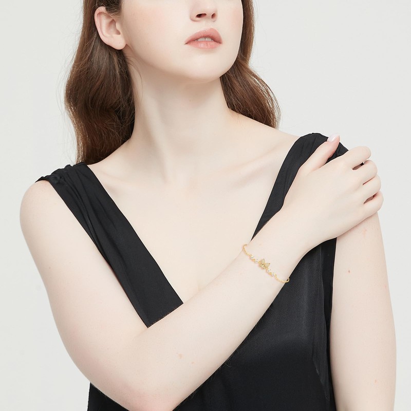 This butterfly bracelet are made of high quality brass and CZ, with good polish and plated with 14K real gold. cubic zirconia are very shine especially while it hits the lights. Perfect for daily wear. No harmful substances, no pressure on sensitive skin.