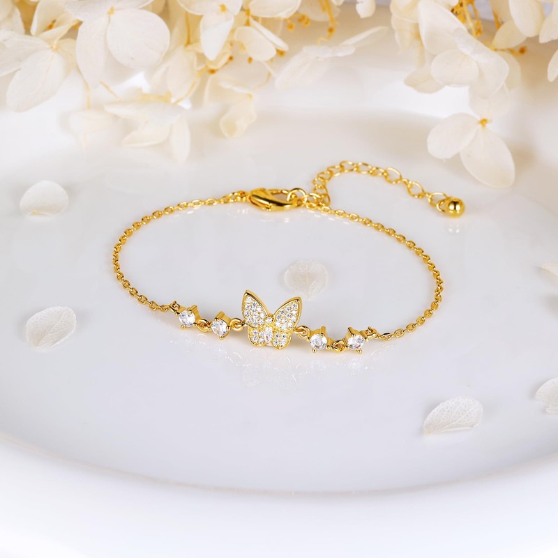 Cubic Zirconia Butterfly Bracelets for Women and Men | Gold Dainty Simple Hypoallergenic Adjustable Bracelet, 7 inches + 2 inches adjustment range, Cubic Zirconia Copper Brass, Cubic Zirconia