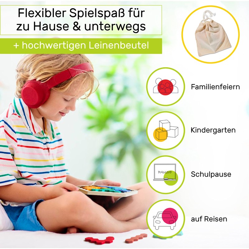- Games from 4 years – solve the children's wooden puzzle by placing each stone in the right place until all wooden blocks are used up. Comes with a game instructions (English language not guaranteed) and a bag for storing the wooden blocks.