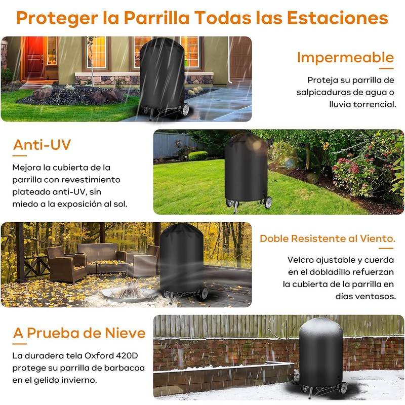 Cubierta Protectora Funda Asador para Weber de 22 Pulgadas, Cubre Asador con Gancho y Bucle y Cordón, 420D Material Impermeable y Anti-UV para Todas Las Estaciones (22 Pulgadas)